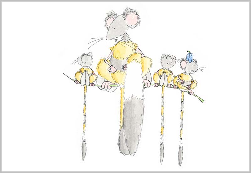 The Tale of the Bumble Mouse is an illustrated poem presented in five parts. It describes the various aspects of love (in her life) and is a sweet and cosy verse that reminds us that this most tender of emotions does indeed exist in all of our lives and in many ways.